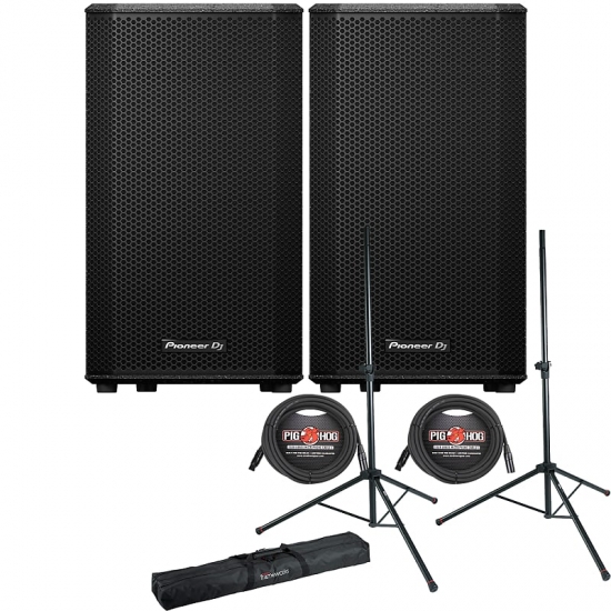 The Pioneer DJ XPRS 10 is a 10" 2-way full-range, bass reflex, bi-amped active speaker well suited for mobile DJs, clubs, bands, houses of worship, touring, speaking engagements, or anywhere portable, high-quality audio is required. Delivering a natural, dynamic sound, the compact enclosure is made from 15mm birch plywood and features AFAST technology to drastically reduce internal standing waves that can produce a muffled response in the low to mid ranges. An acoustic tube in the cabinet absorbs just the standing waves, increasing the low-frequency response. The Pioneer XPRS 10 features a Powersoft amplifier module with 2400W of peak output and utilizes a 10" ferrite low-frequency cone woofer and a 1.75" titanium diaphragm compression driver with a neodymium magnet, which combine to offer a frequency response of 55 Hz to 20 kHz with a max SPL of 134 dB. The rear panel offers two channels of inputs with channel 1 offering a combo XLR/TRS connector and gain control for microphone and line levels, while channel two offers a combo XLR/TRS and stereo RCA inputs with line-level gain control. Each channel offers an XLR link output and there is an XLR line out of both channels mixed together. Other features include four EQ mode selections, an external sub crossover switch, and a front panel LED indicator for power or limiting. The XPRS 10 offers versatile mounting options and can be used as a floor monitor. Additionally, there are two pole cups (0/7°) which offer strait or angled deployment to help direct the sound where it's needed most. The Pioneer XPRS 10 ships with a power cord.