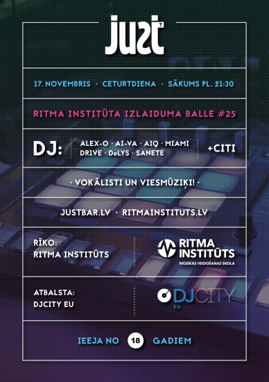 Ritma Institūts piedāvā visiem apmeklēt labāko DJ ballīti kura notiks 17.novembrī no pl.21:30 Just Bar.